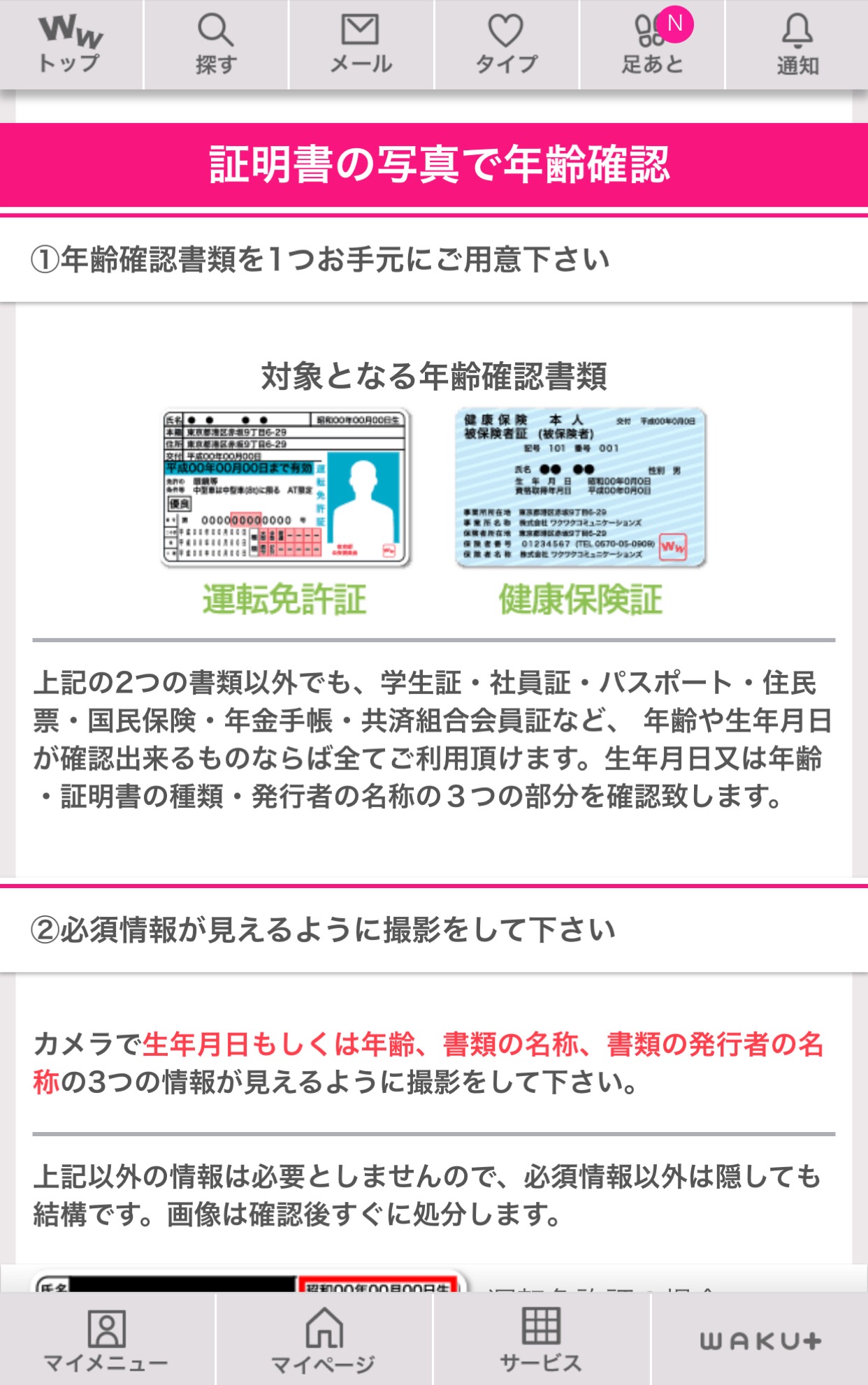 ↓年齢確認書類による確認を行う場合はこちらです。